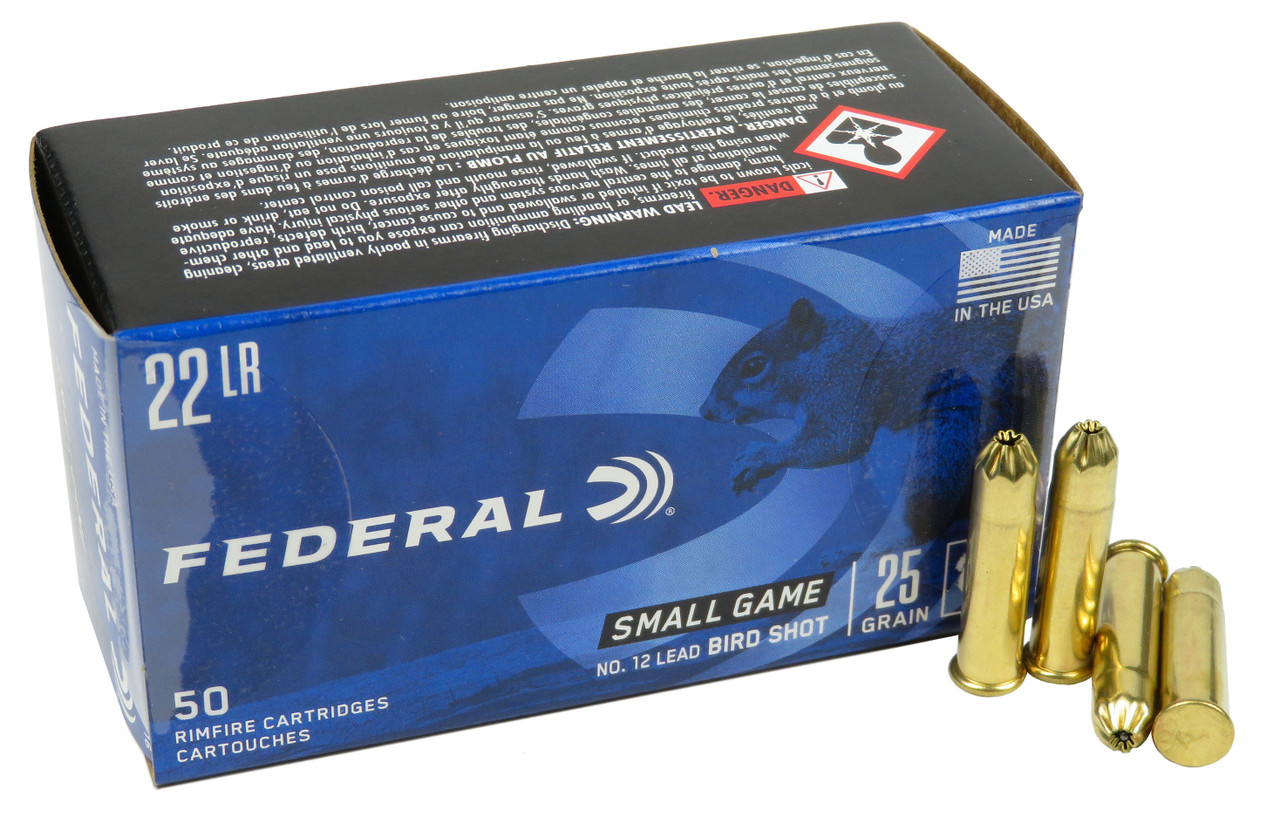 Notes: Federal Ammunition’s Game-Shok rimfire load is presented in .22 Long Rifle configuration with a 25-grain birdshot payload and is packaged 50 rounds per box. These rounds are intended for short-range small-game hunting and pest control, offering a specialized shotshell profile for close targets. They are new-production, non-corrosive rimfire cartridges. Note that this shotshell-style load may not reliably cycle in some semi-automatic firearms.